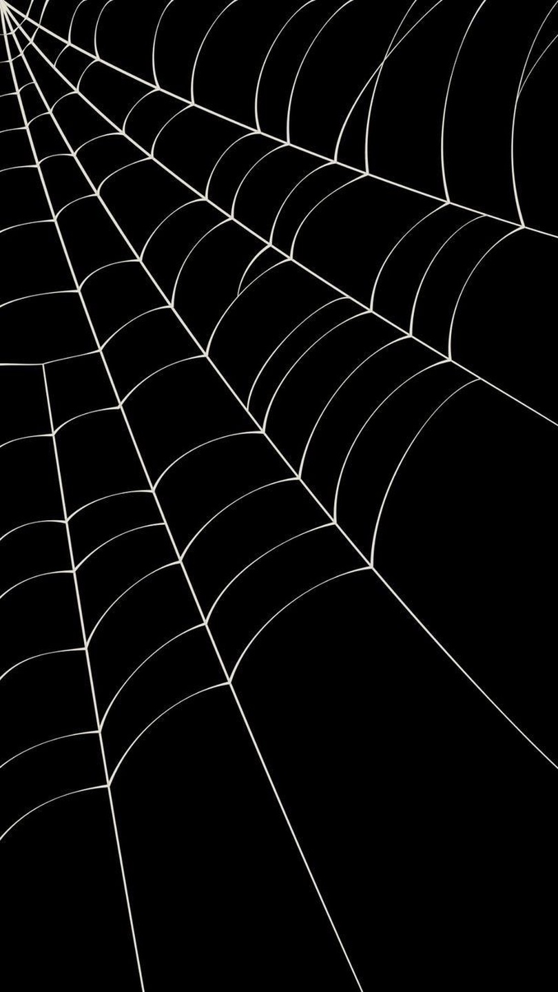 This image showcases a striking black and white spider web against a stark black background. The design is simple yet impactful, with the intricate details of the spider web standing out prominently. The monochromatic color scheme creates a minimalist aesthetic that is both visually appealing and versatile. The absence of any additional elements or text ensures that the focus remains solely on the spider web, making it an ideal choice for those seeking a clean and elegant wallpaper for their devices.