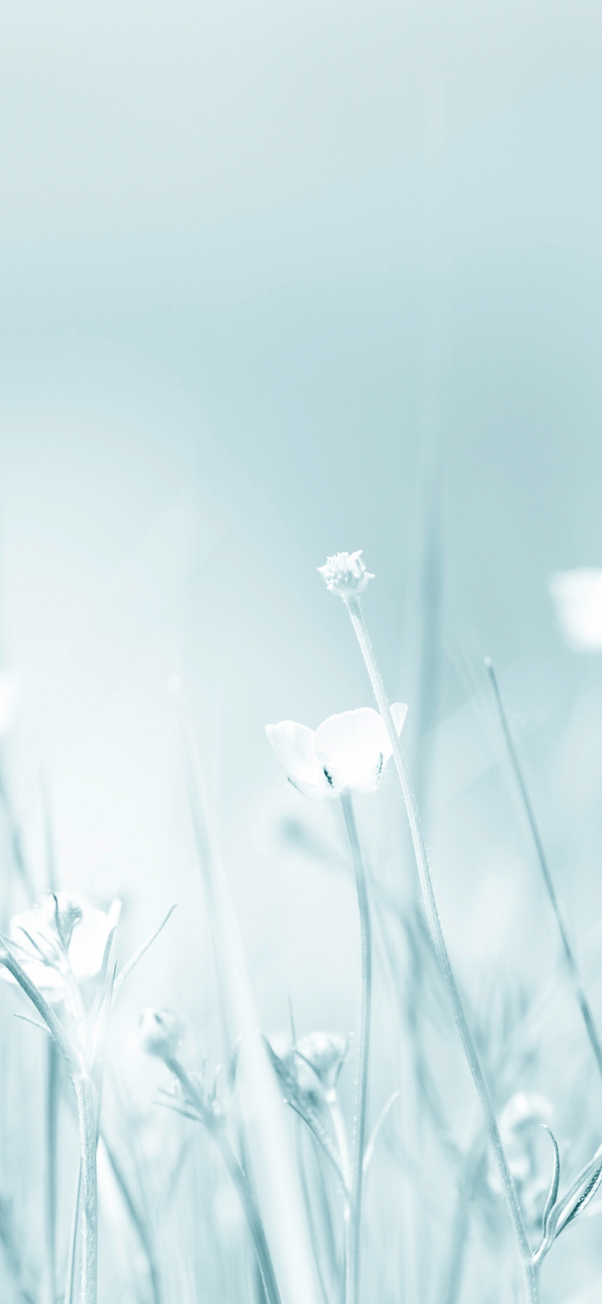 This image features a vibrant, minimalist scene with white flowers blooming in the foreground against a soft, light blue background. The overall composition has an aesthetic vibe that would make for a beautiful wallpaper on any device. With its 4K resolution and stunning detail, this nature-inspired backdrop is perfect for both iPhone and desktop use.